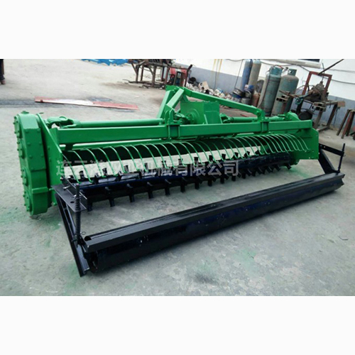 该机采用反转传动轮带动侧边减速齿轮组,使旋耕刀反向转动进行耕地,前刀耕过后,后刀紧跟着续耕并将土地粉碎向后抛洒,配合后档草栅栏将草茬挡下先行落地,粉碎的土壤再洒落在草茬之上,达到了覆盖的效果。该机还可以通过变换传动轮的方向,进行简易的调整便可作旋耕机使用,可以一机多用,大大提供了机具的经济实用性。